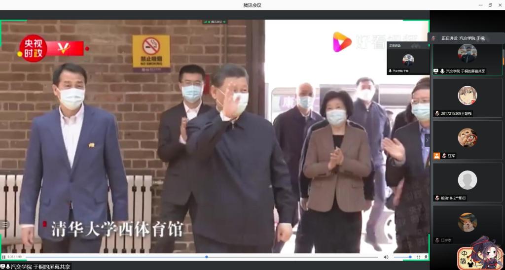 接下来赵旭同志按照时间顺序,梳理了四月前三周部分时事,其中着重关注了在习近平总书记的工作及行程。在听完赵旭同志的分享后,支部党员进行了小组内的交流,彼此分享自己感悟与体会。之后吴桐同志带领大家学习了习近平总书记在清华大学考察时的重要讲话精神,从高等教育发展历程、一流大学建设方向两个方面解读了总书记重要讲话精神。