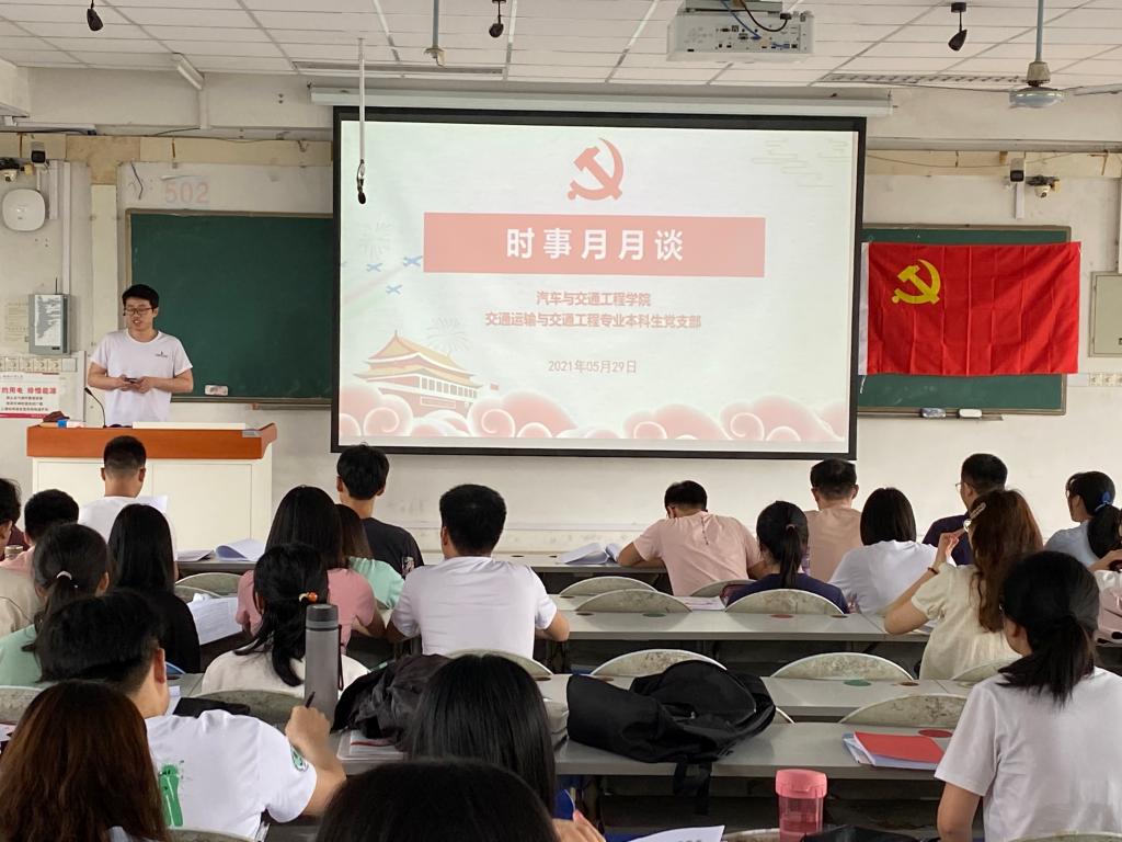 为进一步提升学生党员对时事热点的了解,增强学生党员社会责任感与时代使命感,交通运输与工程专业本科生党支部在5月29日下午14:00于西二502时事月月谈教育活动,针对近段发生的热点时事进行了讨论,支部全体党员参加了活动。