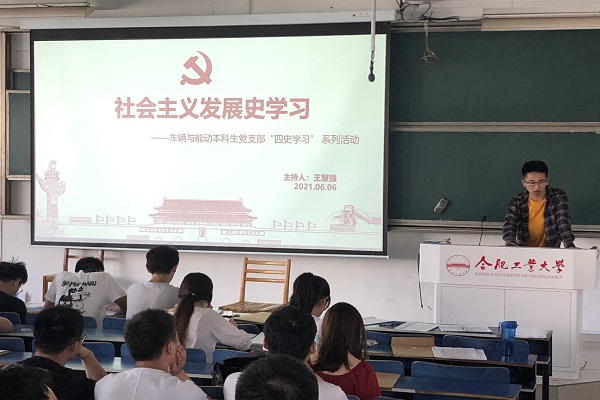 车辆与能动专业本科生党支部在西二教学楼408开展“社会主义发展史学习”专题党课,党支部委员王慧强担任主持人,支部全体委员参加了此次党史学习教育专题党课。
