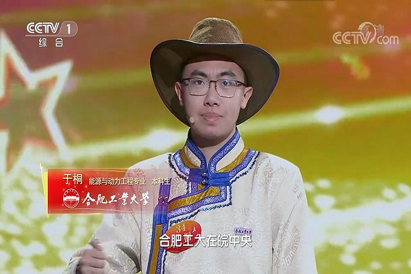 能源与动力工程专业18级本科生于桐以第一名的成绩从现场百人团中脱颖而出,冲上主舞台,与来自中国人民警察大学、山东大学、中央财经大学、东北大学、西南交大的选手同台竞技,表现亮眼,充分展现了工大学子昂扬向上的精神风貌。