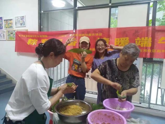 活动当天,志愿者们将包好的粽子送到各位老人手中,走进老人的家中,提前向他们送去了端午的祝福,老人们都十分激动,热情的邀请学生志愿者进家门休息。同时志愿者们也拜访了六安路校区社区的负责人尹老师,畅谈了共同建设老人友好社区的美好理想。一份份粽子承载了志愿者们衷心的祝愿,也让老人感受到社会的温暖,人间的温情。在该活动中,学生志愿者通过孝老敬亲的方式与老人们提前感受了节日的欢乐,为老人和谐美好的生活添砖加瓦。