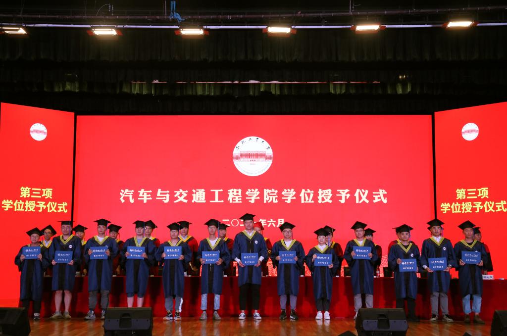 2021届毕业生学位授予决定》。随后,主席台领导真挚的为每位授予学位的学生颁发了学位证书并扶正流苏,场面充斥着谆谆师生情。之后,教师代表车辆工程系赵晓敏老师和学生代表交通工程专业骆刚同学分别进行了发言,从赵老师和骆同学的讲话中,我们感受到了黄播平台