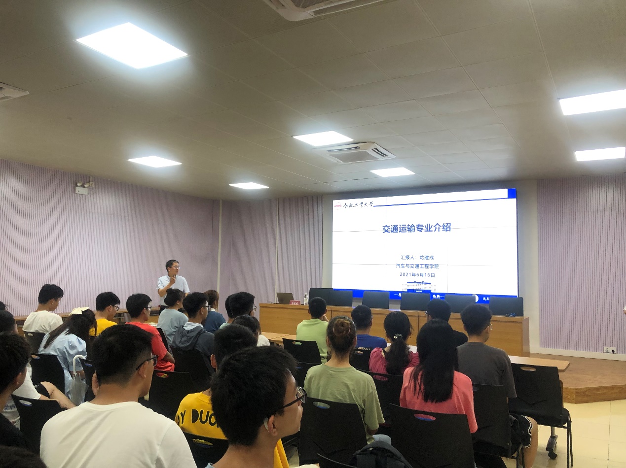 2020级交通运输专业在翡翠湖校区多功能厅开展了小班辅导活动,院长龙建成为学生作了题为“涵养爱校之情,增强专业自信”的专题报告。