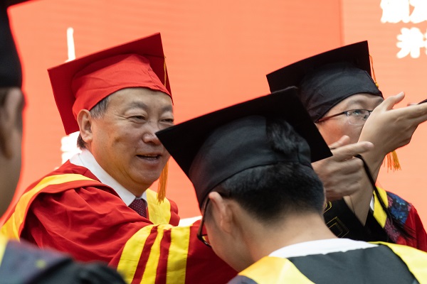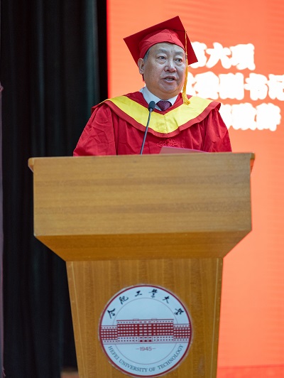 校党委副书记陈鸿海在讲话中代表学校向圆满完成学业并顺利获得学位的各位同学表示热烈的祝贺,向关心、支持学生完成学业的老师、学生家长表示衷心的感谢。并向全体毕业生提出三点希望:一是要步伐坚定,树立崇高理想,争当伟大理想的追梦人,争做伟大事业的生力军,要牢记习近平总书记的谆谆教诲,积极向上,喊出“请党放心,强国有我”的时代强音;二是要不负时光,坚持实干创新,勇担时代重任,牢记报国初心,涵养创新活力,把个人理想融入国家发展伟业,让创新成为青春远航的动力;三是要笃行不怠,保持从容乐观,将“厚德笃学、崇实尚新”的历史传承与“创新求变、担当作为”的时代需要融会贯通,汇聚成昂扬向上的成长力量!
