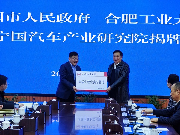 会上,陈鸿海代表学校向宁国市经济技术开发区授予“合肥工业大学大学生就业实习基地”牌匾。
