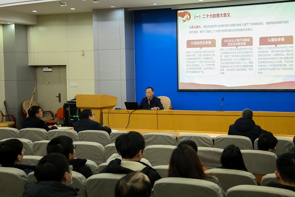 的党建工作和事业发展的精神动力五个部分作了全面宣讲和阐释。他指出,党的二十大精神博大精深,内涵丰富,大会擘画了全面建设社会主义现代化国家、全面推进中华民族伟大复兴的宏伟蓝图,每位教职工必须全面准确学习领会,在贯彻落实上下功夫。